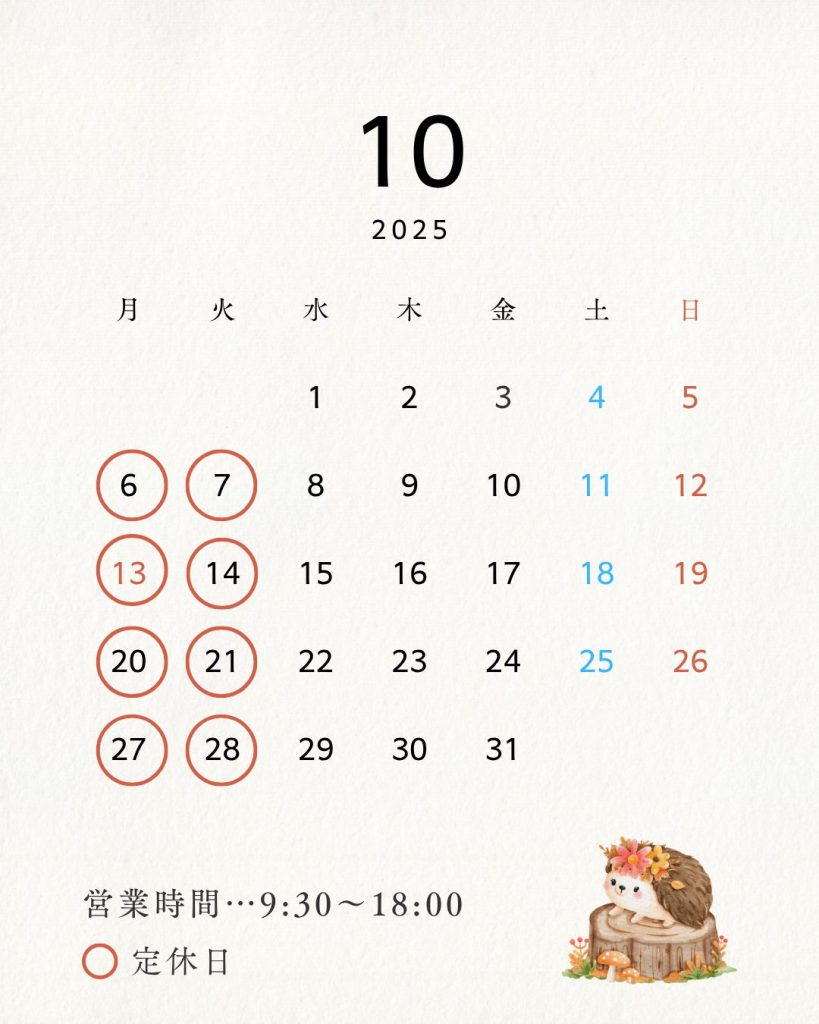 10月の定休日について