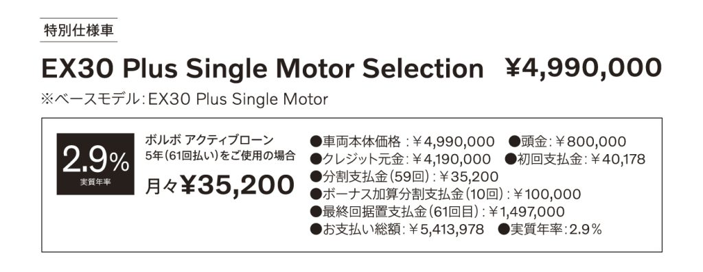 【特別仕様車 EX30 Plus Single Motor Selection 登場!】